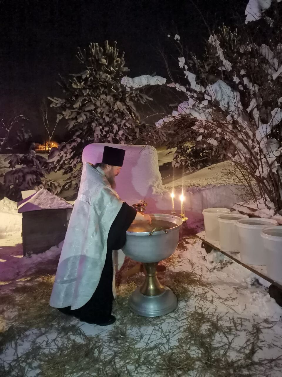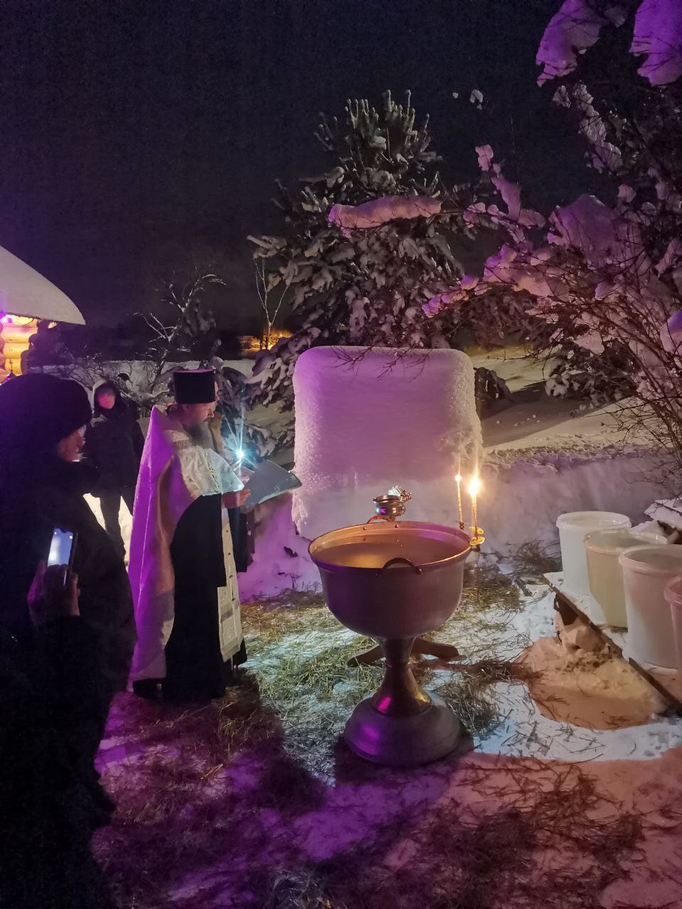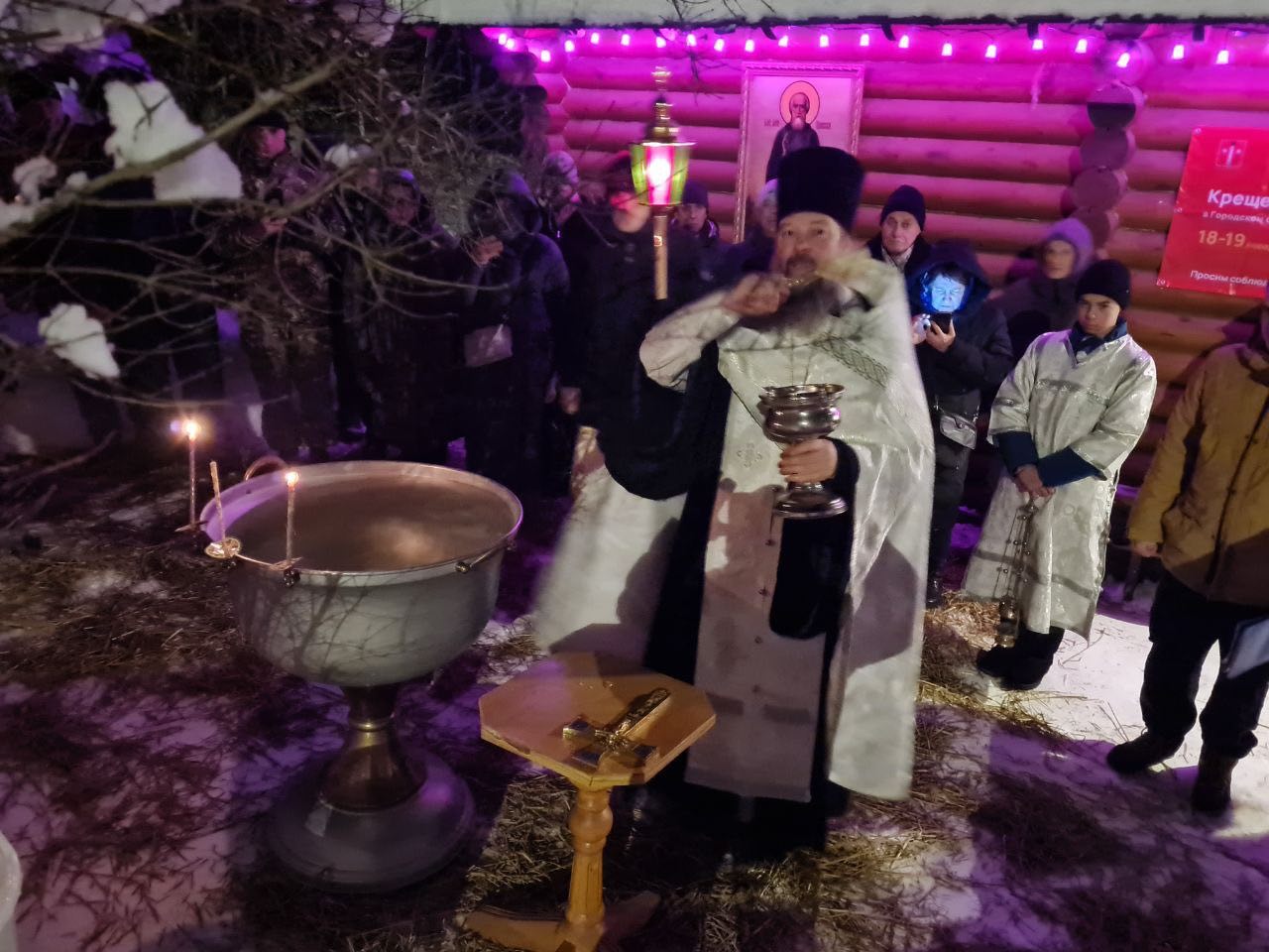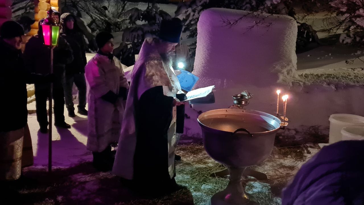 19 января Церковь празднует праздник Крещения Господня. В Богородицерождественском храме д.Богородское праздничное богослужения началось Всенощным Бдением. В полночь настоятель храма протоиерей Владимир Пахачев отслужил праздничную Литургию св.Василия Великого. По окончании богослужения, под колокольный звон, с пением тропаря праздника из храма вышел Крестный ход на источник прп.Сергия. Здесь отец Владимир совершил Великое освящение воды. После освящения, все желающие могли окунуться в купели на источнике и набрать с собой освященной воды.