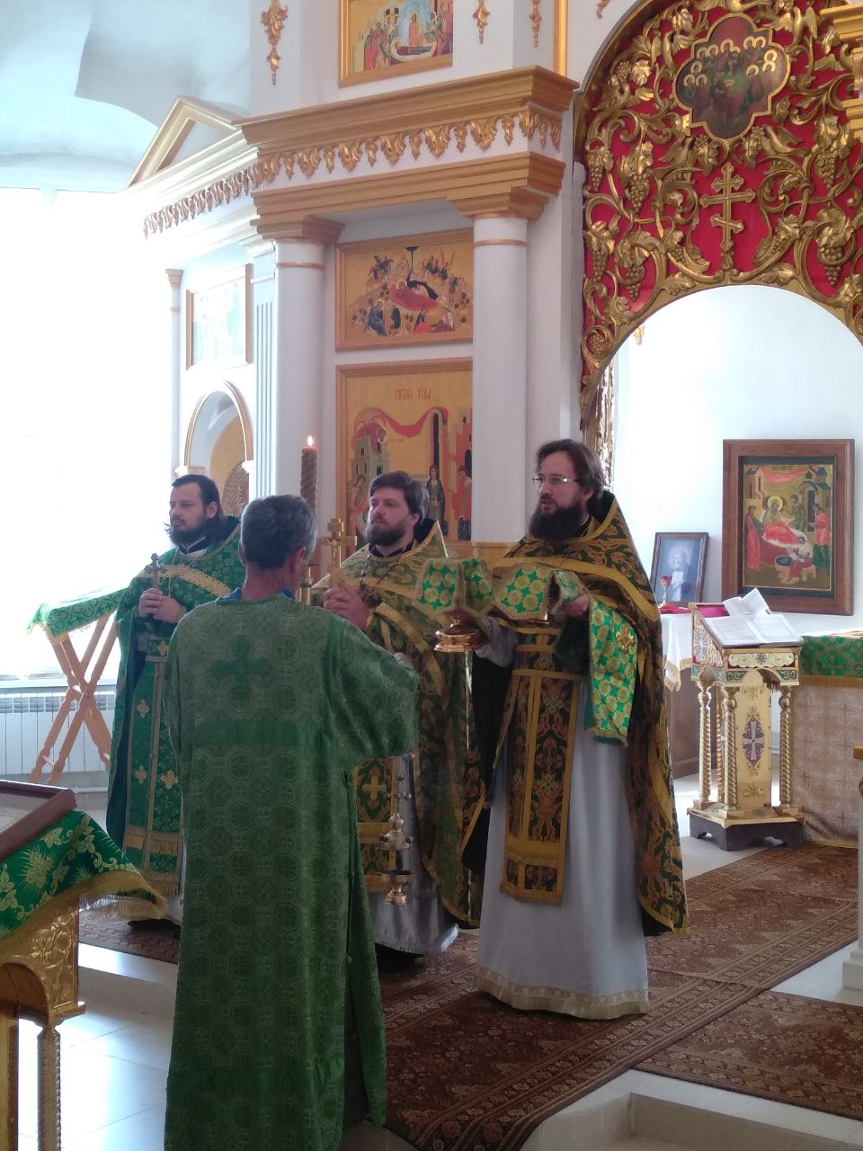 Божественную литургию, совершаемую соборно тремя священниками, возглавил настоятель храма, иерей Илия Лукьянов. Прихожане исповедовались и причастились Святых Христовых Таин. После литургии участники богослужения прошли крестным ходом к источнику преподобного Сергия, находящегося вблизи храма. Там был отслужен водосвятный молебен.