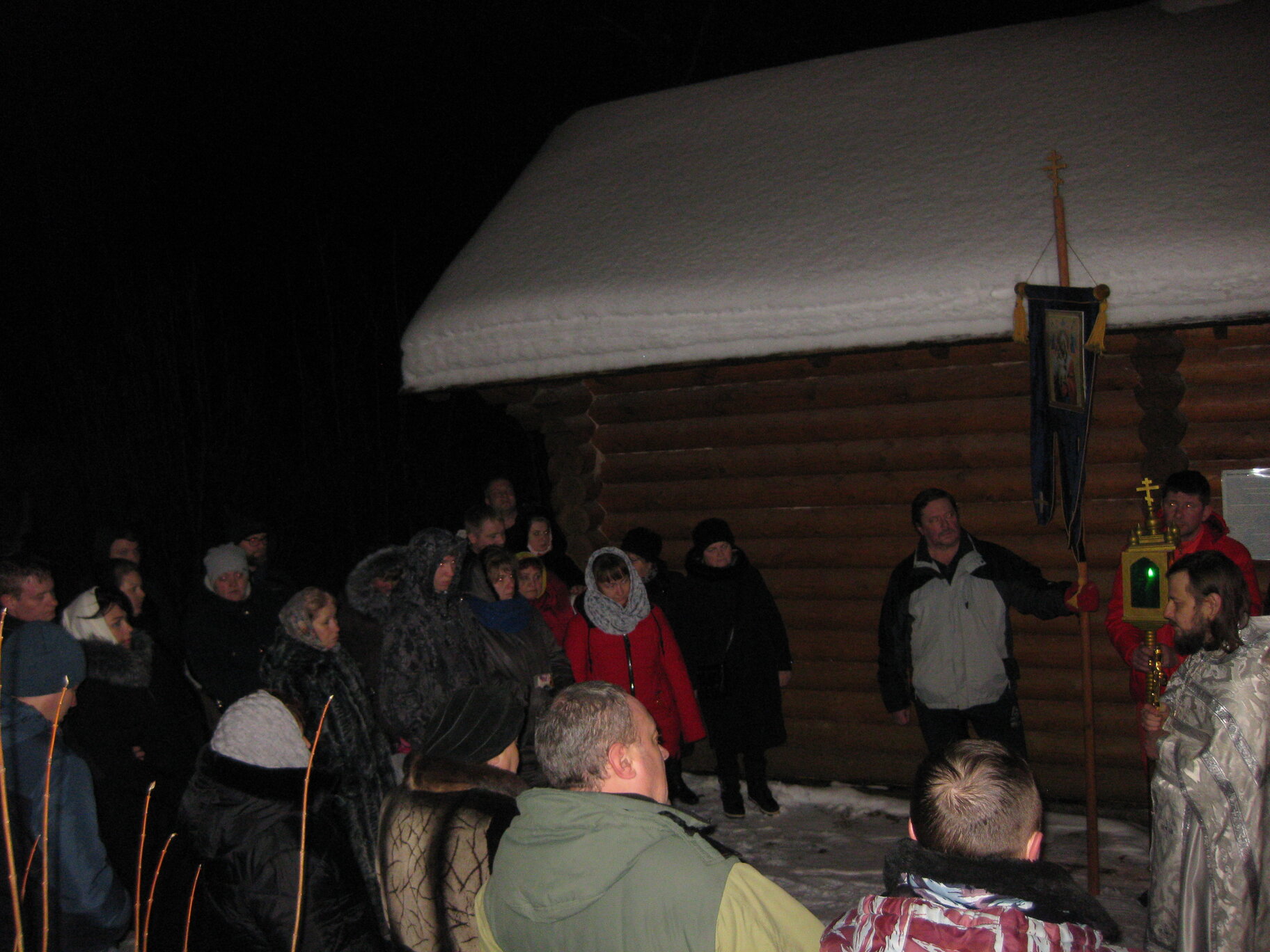 Богослужение началось крестным ходом из храма на источник под пение тропаря, кондака и величания праздника Крещения Господня. По приходу на купель клирик Успенского собора г. Коломны, священник Илия Царьков, сказал слово о смысле и значении праздника Крещения, совершил Великое освящение воды в купели и окропил молящихся. А верующие стали набирать Великую Агиасму и купаться в ней.