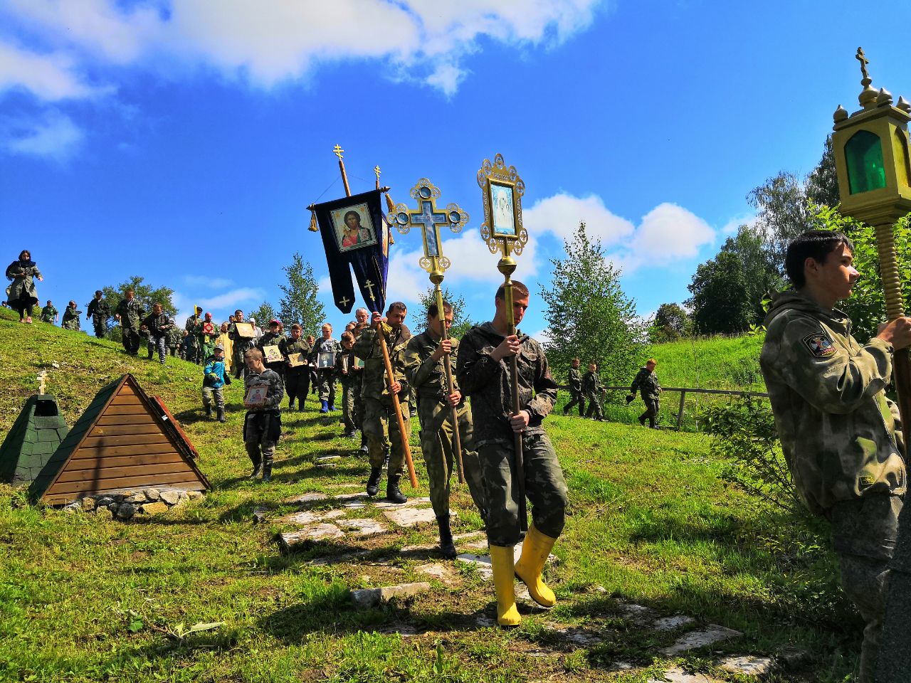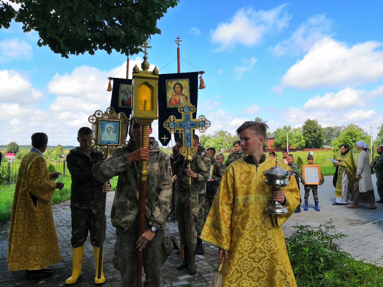 После Литургии состоялся крестный ход на источник преподобного Сергия, где священник Илия Царьков совершил водосвятный молебен. После крестного хода священник Илия обратился к молящимся с праздничным словом.