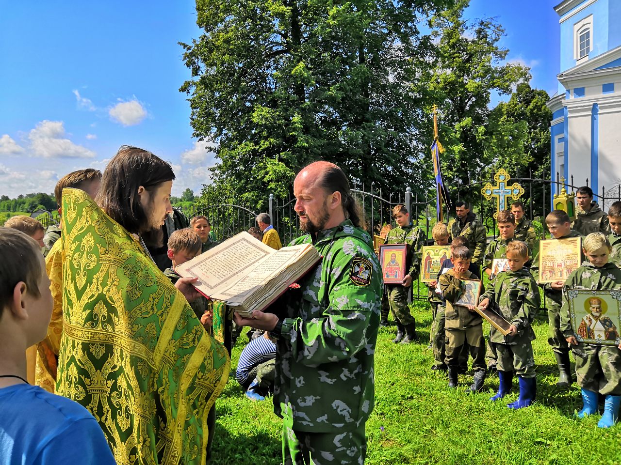 Все желающие получили в подарок духовную книгу. Праздник завершился общим чаепитием на базе военно-патриотического лагеря "Пересвет".