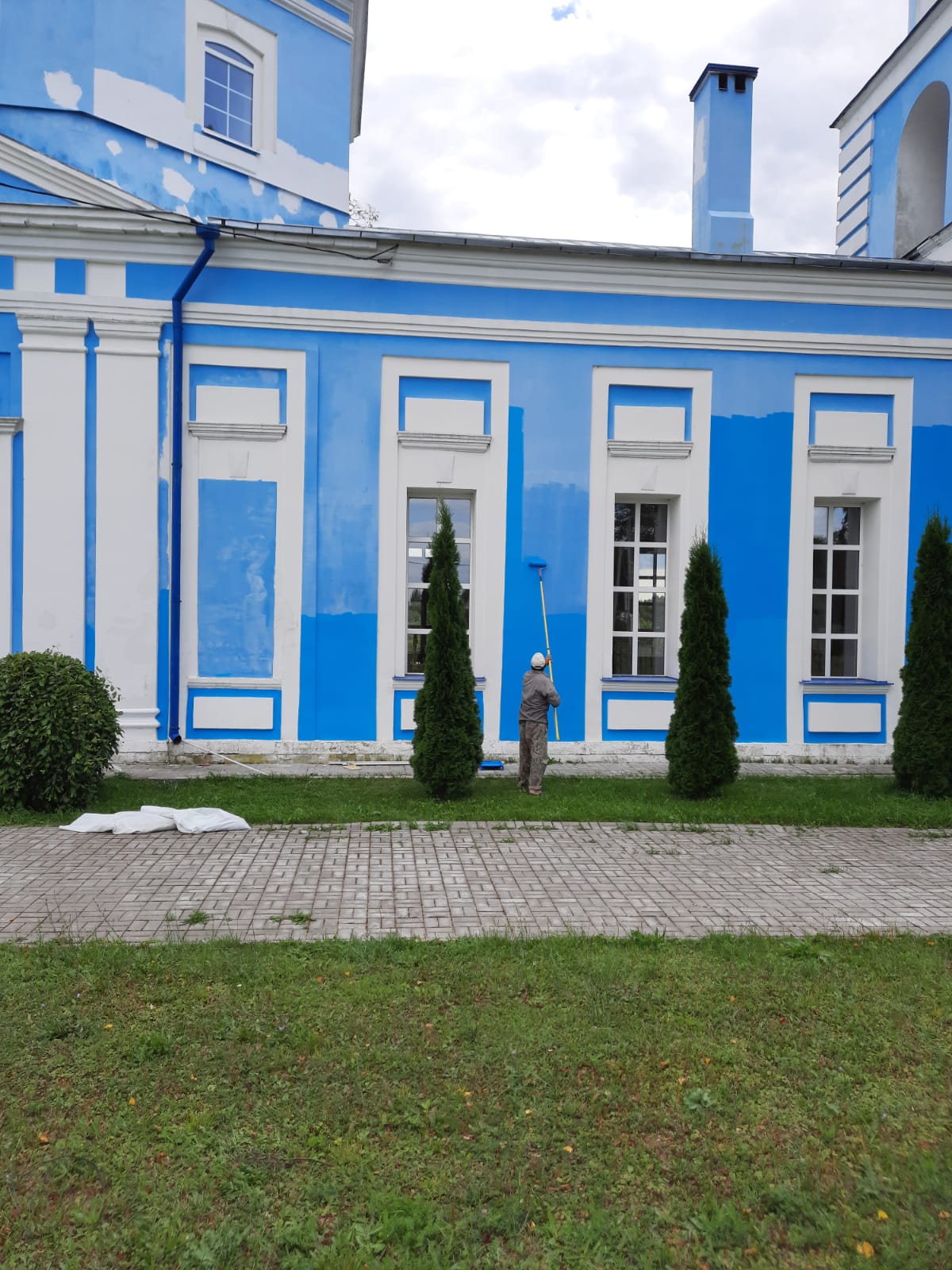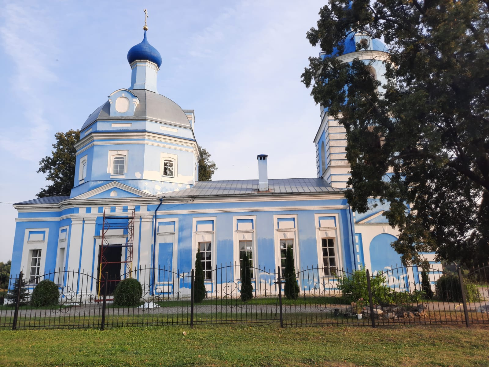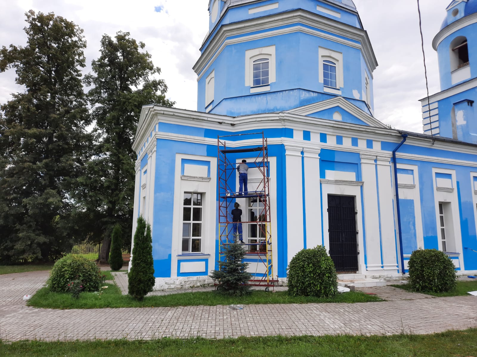 Милостью Божией, предстательством Цариццы Небесной и участием неравнодушных людей в храме Рождества Пресвятой Богородицы проводятся работы по ремонту фасада: штукатурка и покраска наружных стен церкви . Сочетание цветов белого и голубого особо подчёркивает красивую архитектуру храма . На глазах происходит обновление святыни. Благодарим всех участников этого благого дела. Надеемся, что с помощью Божией храм будет подготовлен к Великому Освящению.