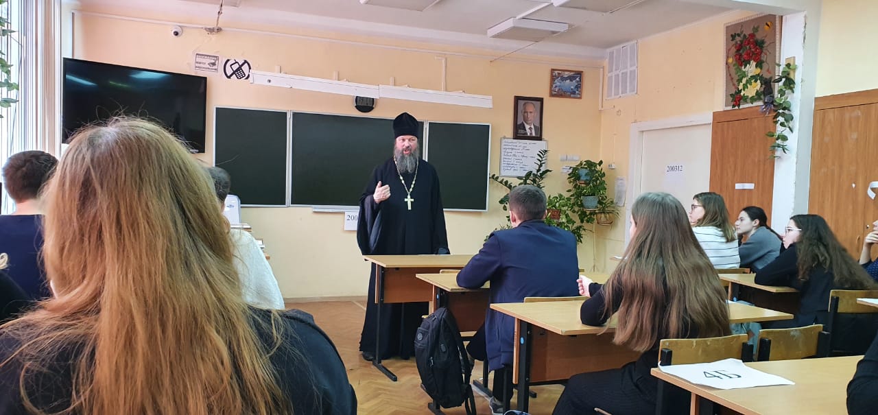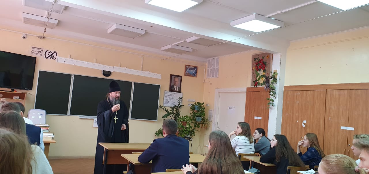 В МБОУ СОШ N 10 г . Коломны 3 и 4 марта прошла встреча настоятеля Богородицерожденственского храма села Богородское протоиерея Владимира Пахачева с учащимися 10 и 9 классов. Вопрос о смысле человеческой жизни стал темой беседы. Беседа была интересная и проходила в атмосфере диалога, где ребята задавали вопросы и высказывали свои мысли.