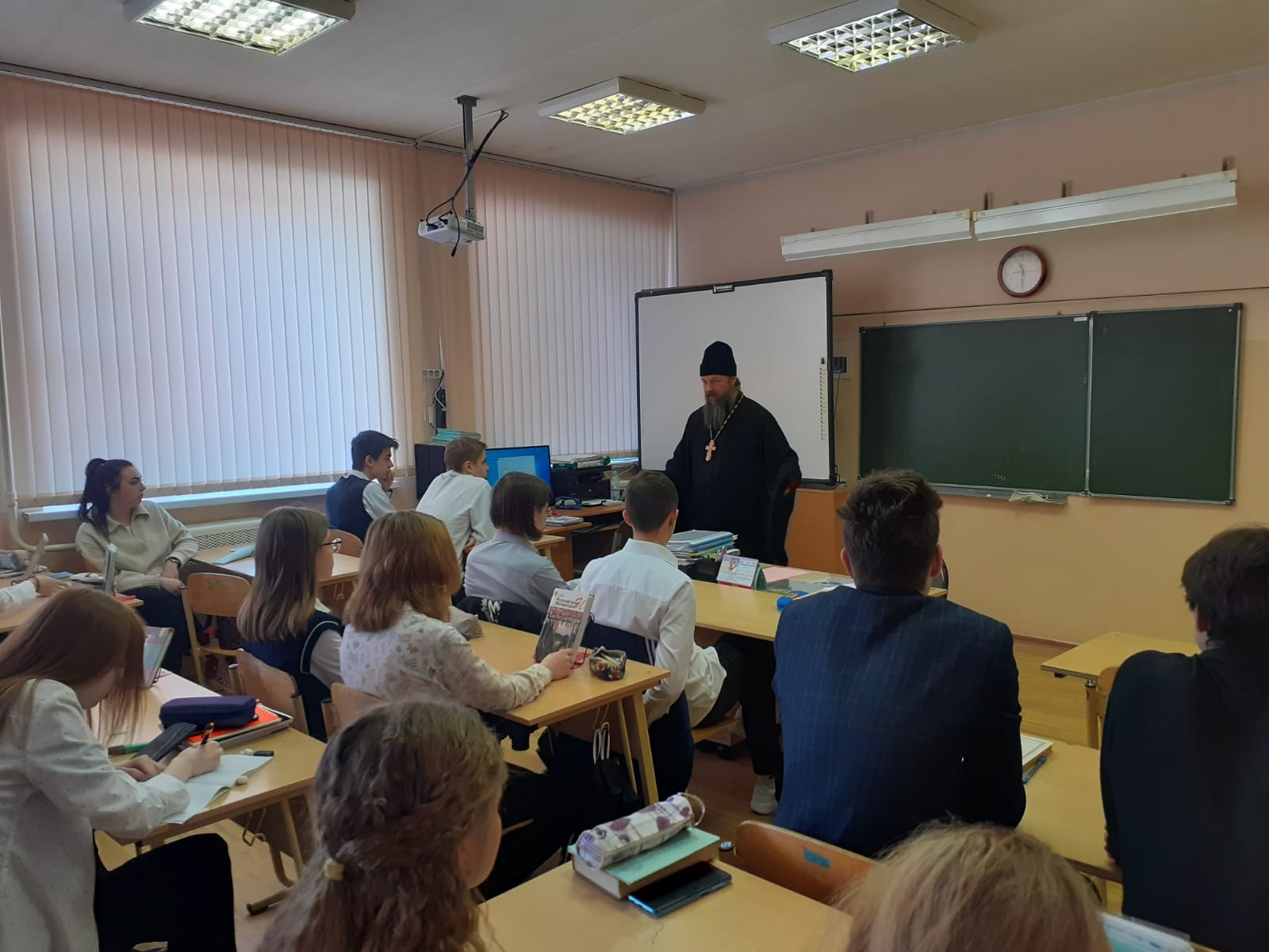 18 марта 2022 года настоятель Богородицерождественского храма д. Богородское протоиерей Владимир Пахачев провел беседы со старшеклассниками МБОУ СОШ №30. Темой встречи с учениками 10 А класса были "Христианские мотивы в творчестве Ф. М. Достоевского".