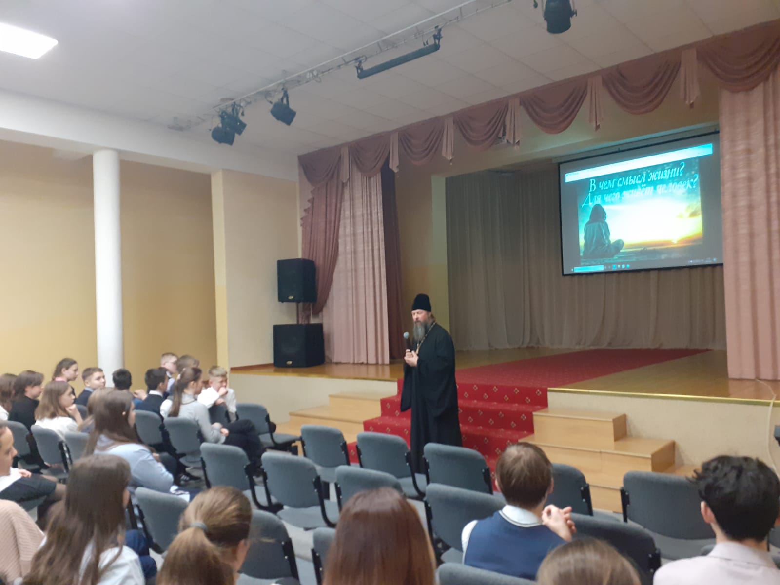 В этот же день состоялась беседа с ребятами 9-х классов на тему " О смысле жизни", в ходе которой был дан ответ на этот вопрос с христианской точки зрения.