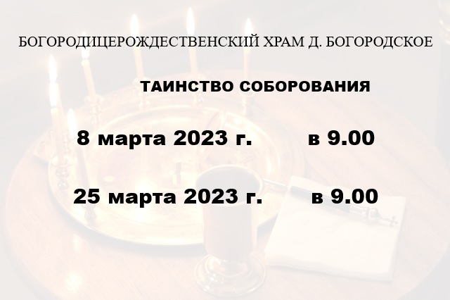 Братья и сестры. Приглашаем вас на таинство Елеосвящения (Соборование) в наш храм 8 и 25 марта.
