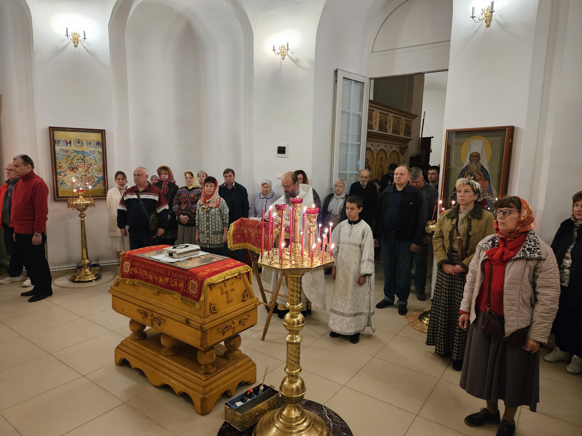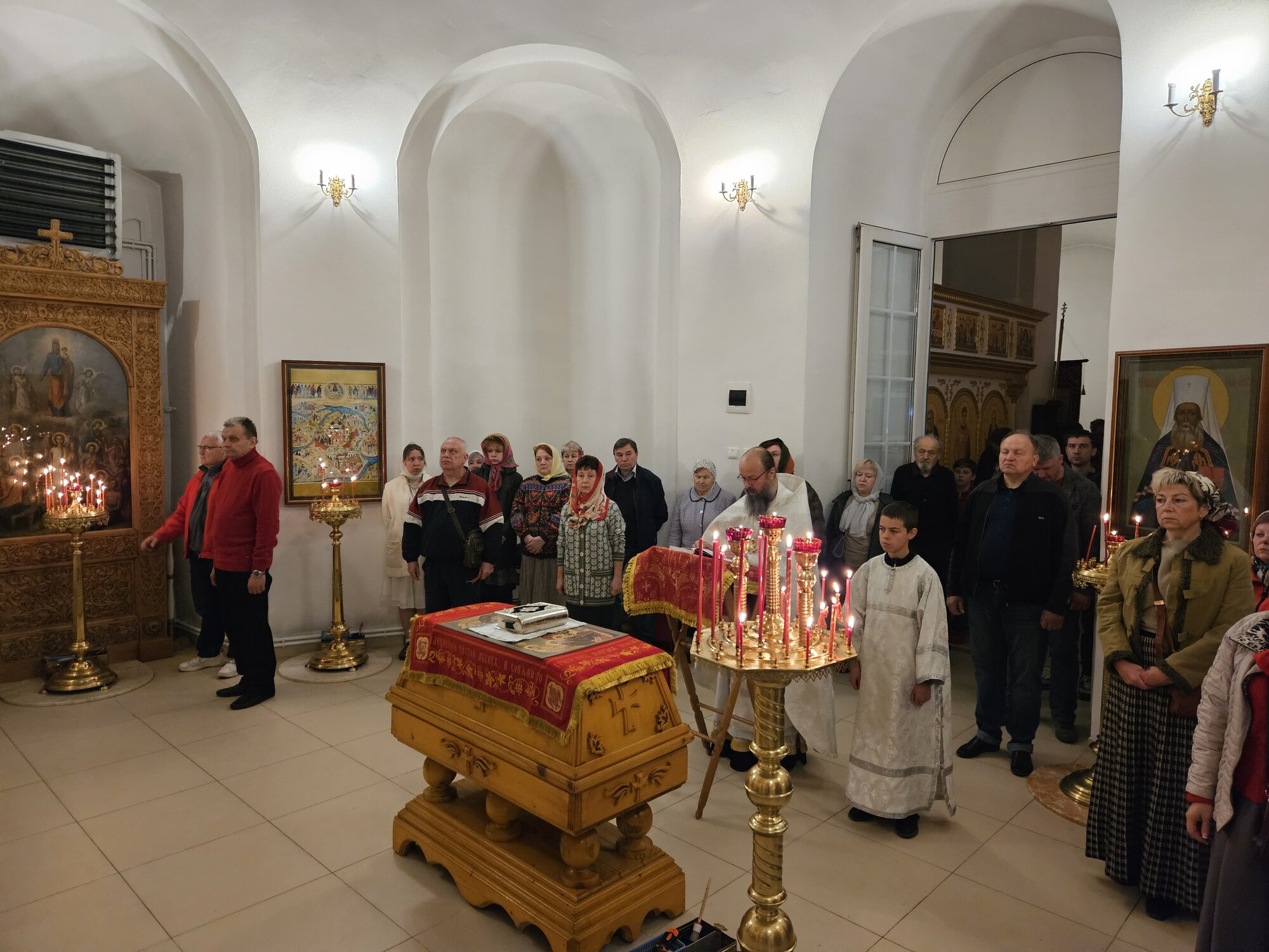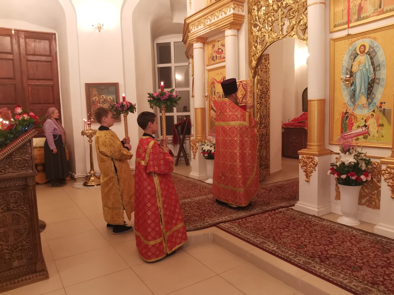 В Светлый праздник Пасхи прихожане и гости храма собрались на праздничное Богослужение. К празднику Христового Воскресения храм украсился множеством цветов. В Великую субботу многие жители окрестных сел, гости из столицы и Коломны приехали в храм освятить пасхальную снедь. На ночное Пасхальное богослужение люди пришли заранее, чтобы успеть поисповедоваться и помолиться на Полунощнице. Кто не успел раннее, приложились к плащанице. Людей переполняла радость от участия в Пасхальной заутреней, которая началась Крестным ходом, и Божественной Литургии, где многие причастились Христовых тайн. По окончании Литургии настоятель храма протоиерей Владимир Пахачев поздравил всех с Великим Праздником Пасхи и пригласил на праздничную трапезу. Спасибо Господу за всё!