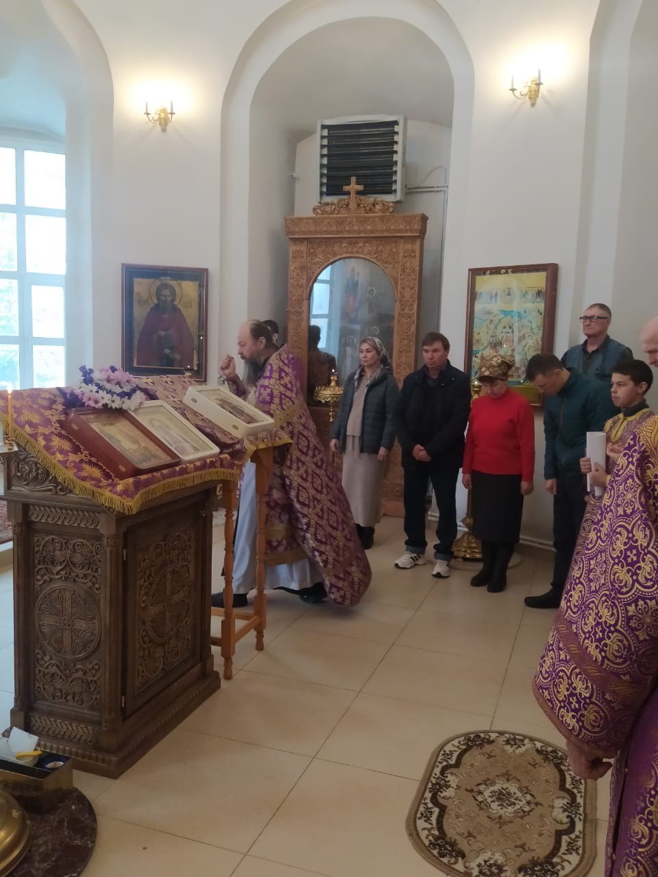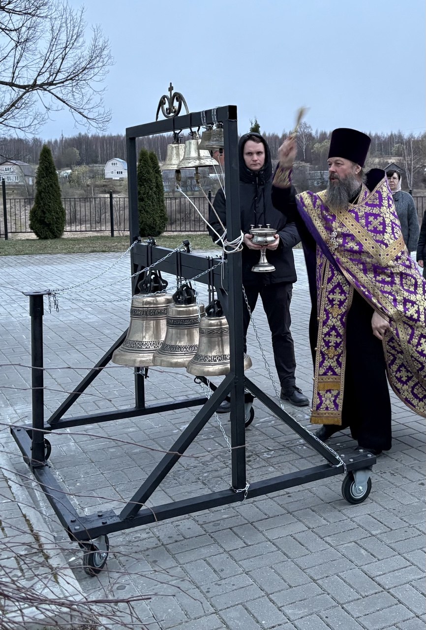 5 апреля 2025 года в канун дня памяти святителя Тихона,патриарха Московского и всея Руси,после Всенощного бдения , настоятель Богородицерождественского храма д. Богородское протоиерей Владимир Пахачев совершил освящение малой передвижной звонницы, созданной на приходе.