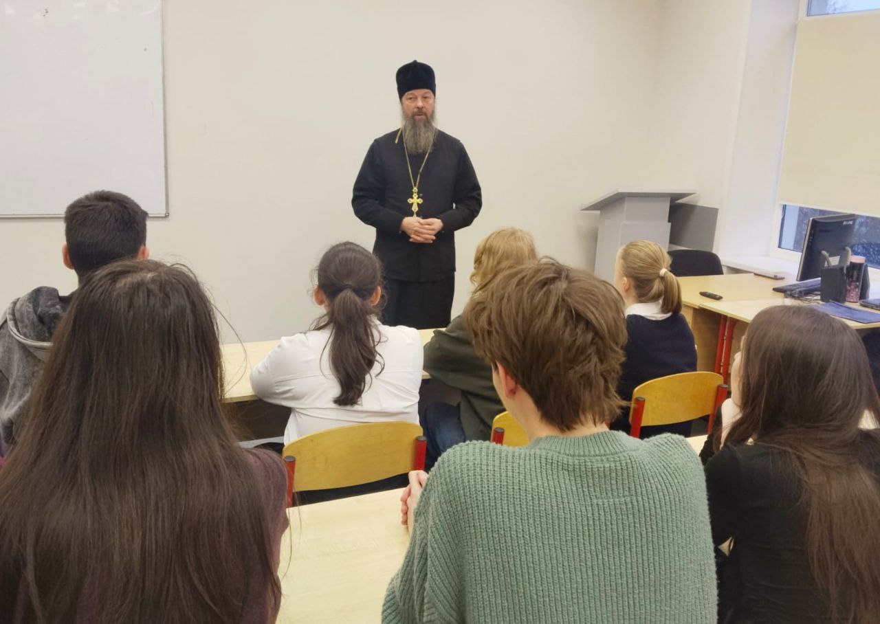 25 ноября настоятель Богородицерождественского храма протоиерей Владимир Пахачев в рамках открытых Рождественских чтений провел встречу со студентами 1 курса факультета иностранных языков ГСГУ. На встрече рассматривался вопрос христианского понимания ценностей и смысла жизни человека. В конце беседы отец Владимир ответил на вопросы студентов.